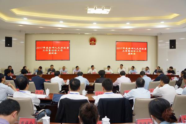 9月28日,2017年度全市人大办公室工作暨信访工作座谈会在我区召开。会议围绕“牢固树立‘四个意识’,做好人大办公室和信访工作”进行了主题交流,通报了今年1月至8月全市人大信访工作情况,安排了2018年《人大论坛》征订工作。市委常委、区委书记崔英魁,市人大常委会党组副书记、副主任王炳荣出席会议并讲话。会议由市人大常委会党组成员、秘书长杨亚军主持。